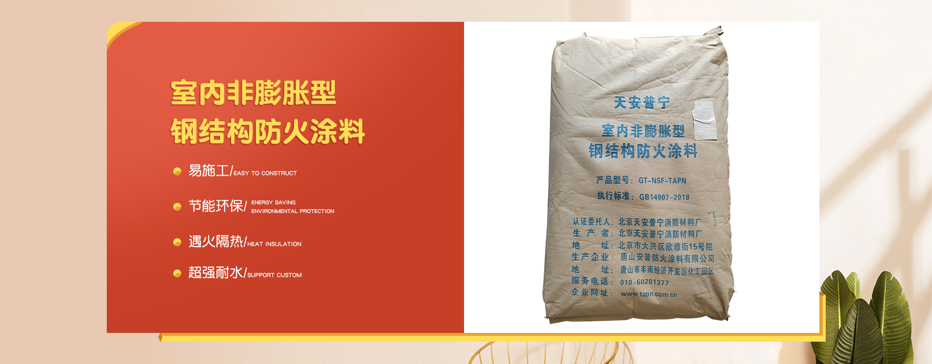 北京天安普寧消防材料廠是一家從事防火涂料二十多年生產(chǎn)企業(yè),企業(yè)集研制開(kāi)發(fā)、生產(chǎn)銷(xiāo)售及各類(lèi)防火涂料施工為一體。 企業(yè)員工總數(shù)100人,其中管理人員20人,科研人員10人,銷(xiāo)售50人,其他員工十多人。企業(yè)生產(chǎn)用地面積2000平方米左右,辦公用地面積1000平方米。擁有先進(jìn)的生產(chǎn)設(shè)備20多臺(tái),年生產(chǎn)量10000余噸。 企業(yè)擁有一支高學(xué)歷、資歷深的研發(fā)隊(duì)伍,以科學(xué)的管理,先進(jìn)成套的生產(chǎn)流水線設(shè)備及完善的產(chǎn)品質(zhì)量檢驗(yàn)措施,開(kāi)發(fā)出TAPN系列防火涂料產(chǎn)品,可以滿足于各類(lèi)建筑工程中不同基材、不同技術(shù)要求的防火保護(hù),天安普寧系列防火涂料全部經(jīng)過(guò)《國(guó)家消防及阻燃產(chǎn)品質(zhì)量監(jiān)督檢驗(yàn)中心》檢驗(yàn),理化性能合格,防火性能高,通過(guò)《應(yīng)急管理部消防產(chǎn)品合格評(píng)定中心》認(rèn)證并獲得《消防身份信息標(biāo)識(shí)》。 企業(yè)結(jié)合多年的工程施工實(shí)踐經(jīng)驗(yàn),培養(yǎng)了一支專(zhuān)業(yè)有素、經(jīng)驗(yàn)豐富、高質(zhì)量、效率高的防火涂料施工隊(duì)伍,可承攬各類(lèi)高層、多層、大跨度廠房及網(wǎng)架鋼結(jié)構(gòu)防火涂料噴涂施工服務(wù)。 企業(yè)始終為用戶全心全意服務(wù),不斷滿足各建設(shè)單位的要求,共同為我國(guó)的建筑消防事業(yè)作出更大的貢獻(xiàn),衷心感謝新老客戶的支持,全體員工熱情歡迎廣大用戶的光臨惠顧。